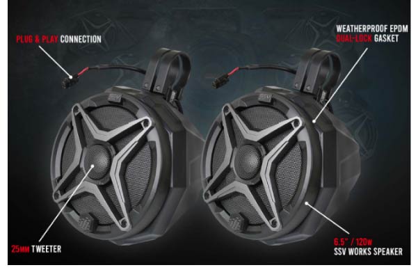 Trail Ready: Built for the off-road environment, SSV Works’ audio components will withstand all the harsh riding conditions. From sand, dust, water or snow, you can ride your favorite trails without sacrificing premium audio from SSV Works.